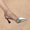 Bursting~ Silver high heels women's 2025 summer new beautiful rhinestone one-word with pointed thin heel bag head sandals
