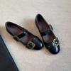 Spring Flat Shoes Women's Round Head Shallow Mouth Metal Buckle Soft Sole Non-slip Wear-resistant Single Shoes