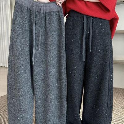 Pantaloni della tuta grigi a gamba larga da donna, pantaloni sportivi oversize casual, stile coreano streetwear, pantaloni da jogging dritti vintage
