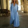UR Women's Retro Washed Denim Belted Long Dress