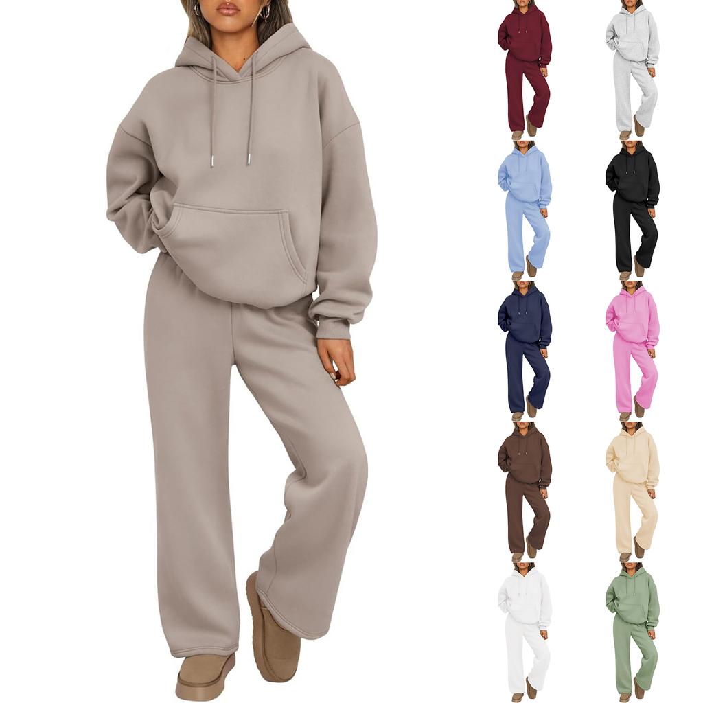 Felpa con cappuccio calda casual da donna Pantaloni casual Tuta sportiva invernale