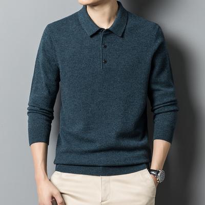 T-shirt a maniche lunghe con risvolto per uomo Primavera e Autunno Nuovo Stile Polo per Uomini Giovani e di Mezza Età T-shirt a maniche lunghe a tinta unita