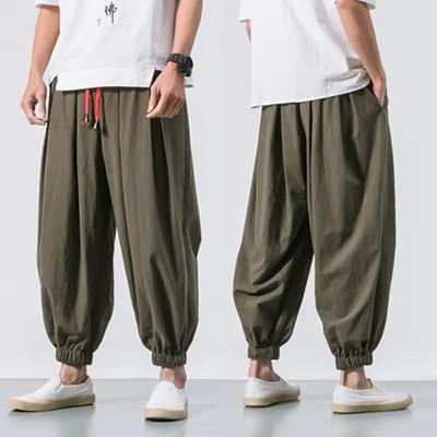 Nuovi Pantaloni Casual Estivi da Uomo Stile Cinese Larghi a Gamba Larga Piedino Stretto Larghi a Lanterna