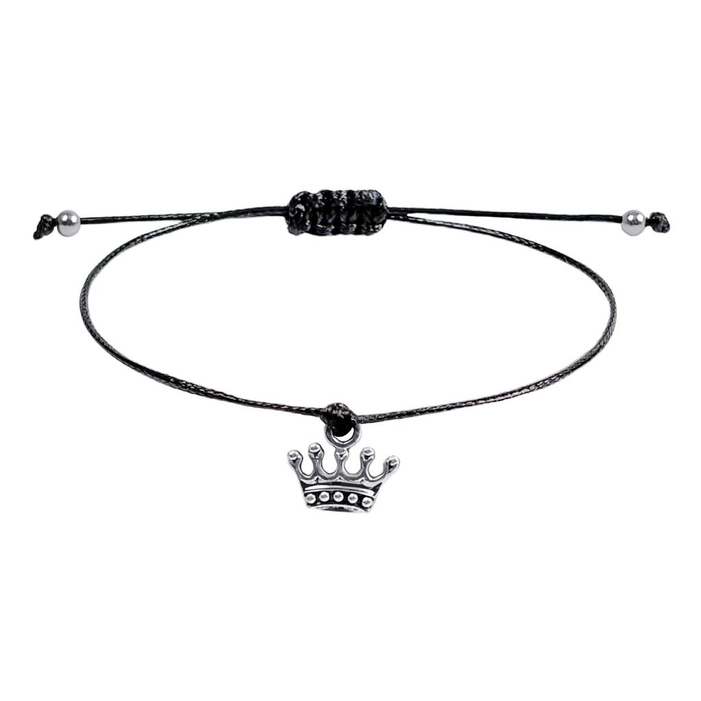 Adjustable Zinc Alloy Crown Black Waxed Cord Bracelet