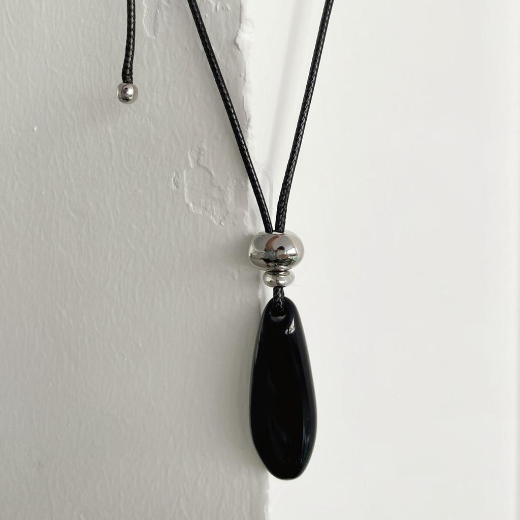 Teardrop Black Agate Pendant Sweater Necklace - Elegant European & American Fashion Jewelry.