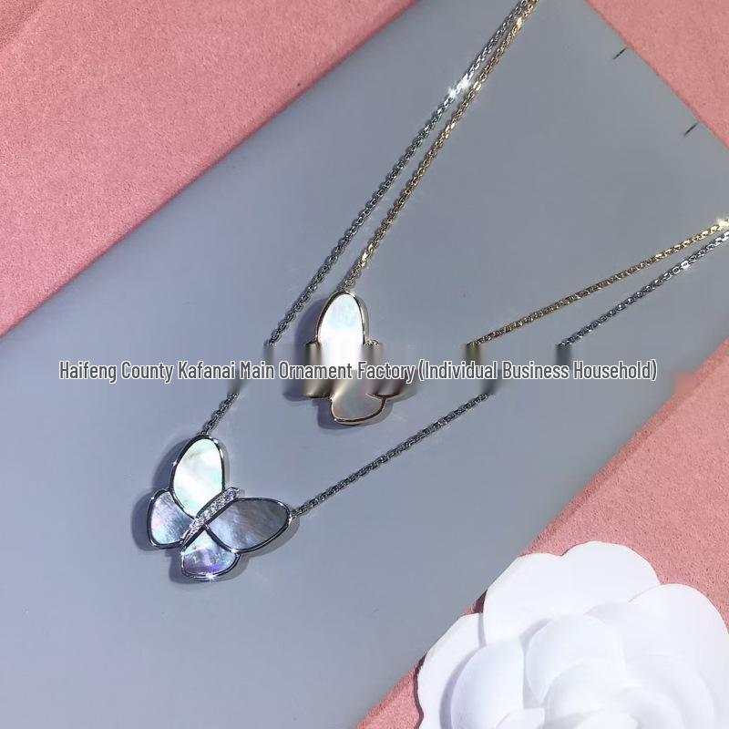 Elegant Mother-of-Pearl Butterfly Necklace in White and Champagne Gold