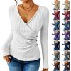Camicette e camicie con scollo a V a maniche lunghe con stampa tinta unita primavera autunno moda casual da donna