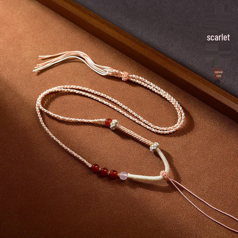 Cordino per Thangka Intrecciato di Alta Gamma: Collana con Cordoncino e Ciondolo Oro Ambra & Giada