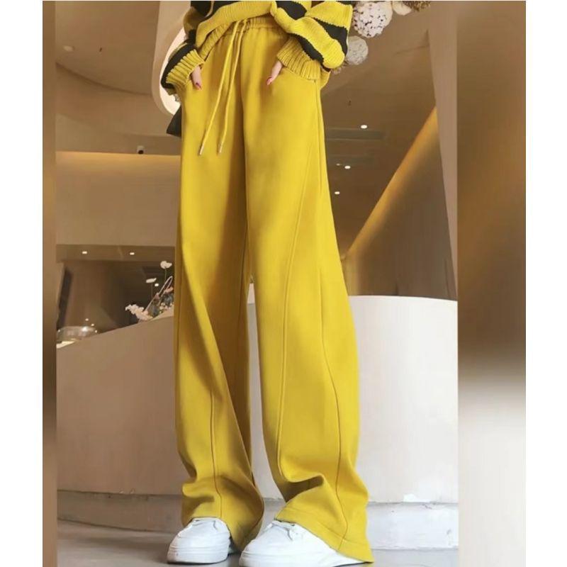 These Women's 2025 Yellow Slimming Sweatpants are the perfect blend of comfort and style, crafted from high-quality cotton material. Designed with a high waistline, they offer a flattering fit for any casual occasion. The straight-leg, wide-leg silhouette allows for ease of movement, making them ideal for both dance and sports activities. Embrace a fashionable look while enjoying ultimate comfort with these must-have sweatpants.
