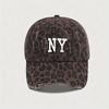 Embroidered NY Distressed Leopard Print Baseball Cap, Breathable Adjustable Golf Summer Fashion Curved Brim Hat, Lightweight Polyester, Toggle Closure