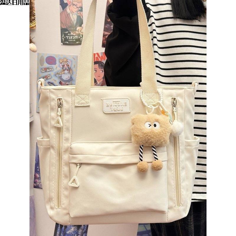Cream Commuting Crossbody Tote Bag - Large Capacity, Versatile, One-Shoulder Handbag for Students