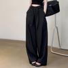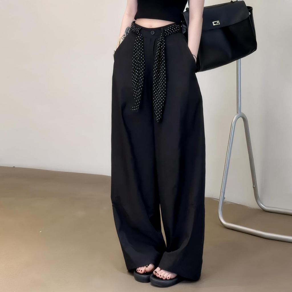 Women's High-End Black Wide-Leg Suit Pants: Autumn Loose-Fit, Slimming, Versatile, Straight-Leg, Floor-Length