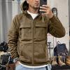 New Men's Solid-Colour Hooded Sweatshirt with Multiple Pockets Leather-Patch Detail Zip-Up Jacket