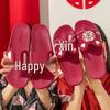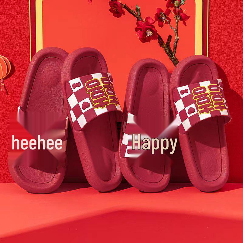 Festive Chinese Wedding Couple Slippers - Double Happiness Indoor Sandals for Men & Women