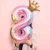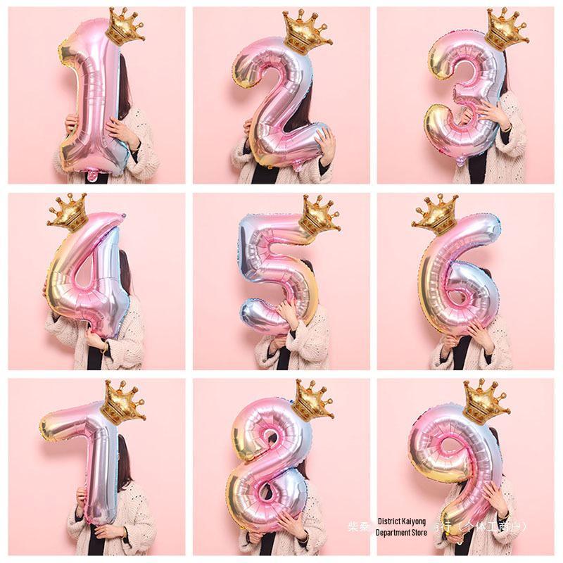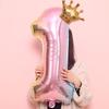 Gradient Rainbow Balloon with Crown for Girl's First Birthday Party Background Decoration