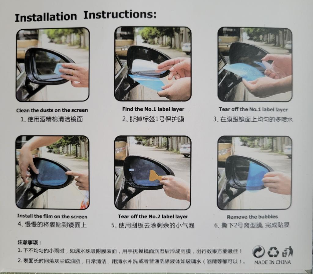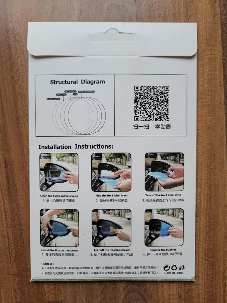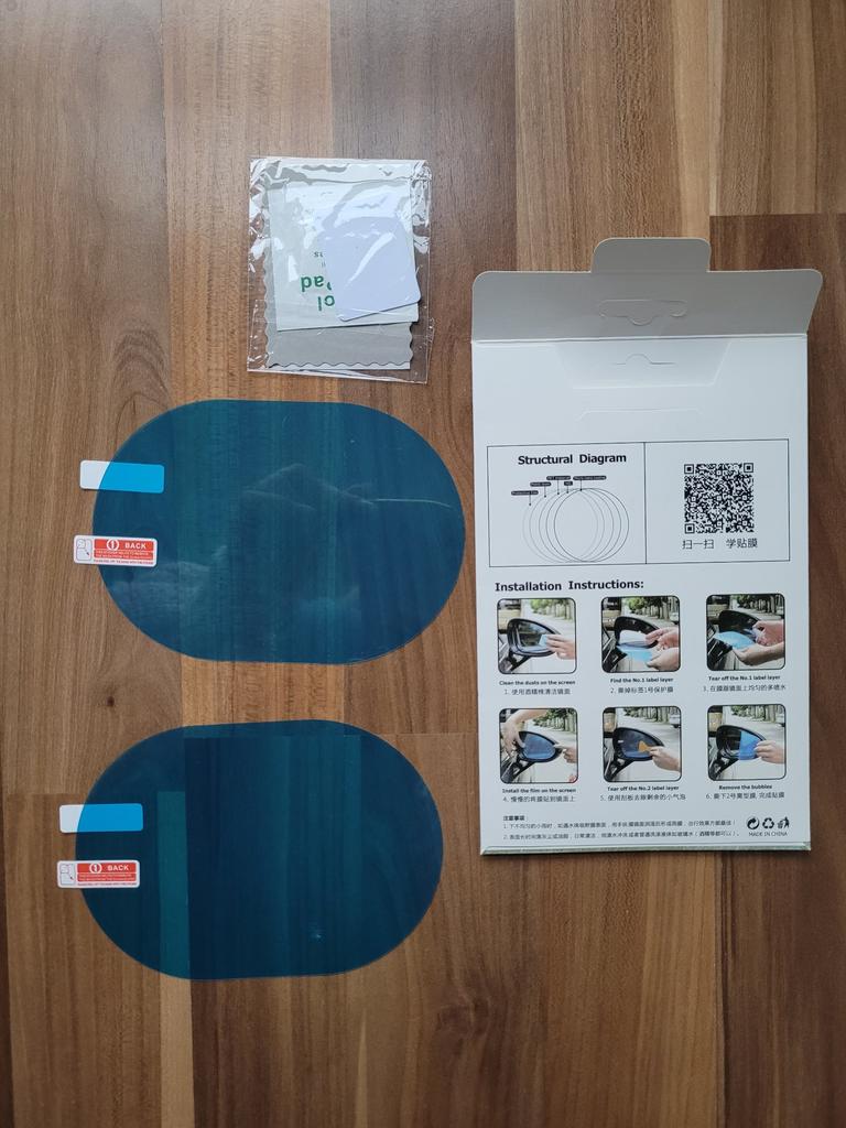 Pellicola protettiva antiappannamento e antipioggia per specchietti retrovisori esterni dell'auto👍👍😉👍👍 Molto consigliata 👌. 📦 Contenuto della confezione: 2 Pellicole protettive antiappannamento e antipioggia. 👍Pro: Inviato in Spagna in 24 giorni.✈️ Ben protetto per il viaggio. Presentazione eccellente in una busta. Qualità in accordo con il prodotto che è. Protegge gli specchietti retrovisori esterni da appannamento e pioggia evitando che vi rimangano gocce d'acqua.. Avrai sempre puliti dall'acqua i tuoi specchietti retrovisori per una visione perfetta nei giorni di pioggia. Molto facile da posizionare. 👎Contro: Niente da evidenziare.
