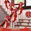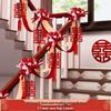 Double Happiness Ribbon & Flower Stair Railing Decoration for Wedding Room