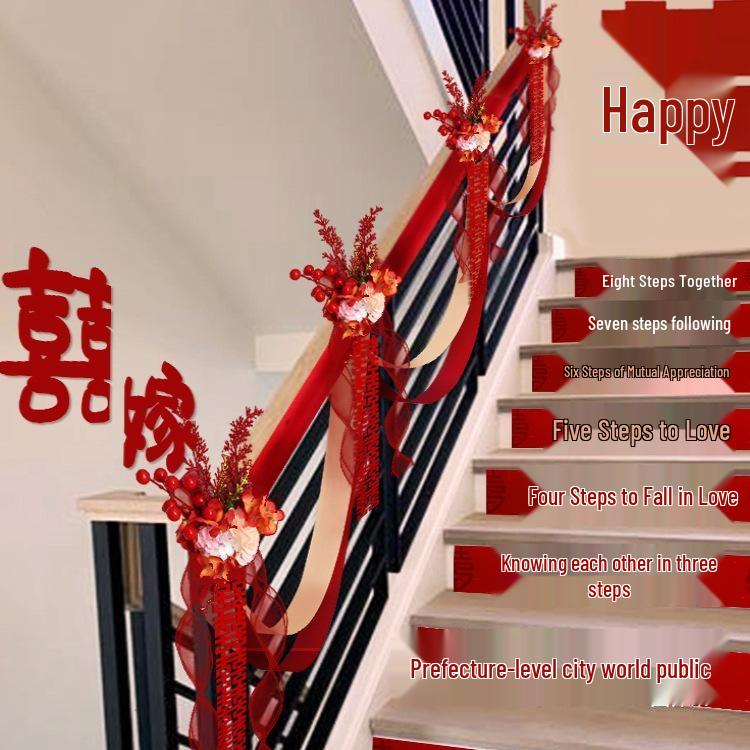 Wedding Stair Railing Decoration Set with Double Happiness Pull Flowers