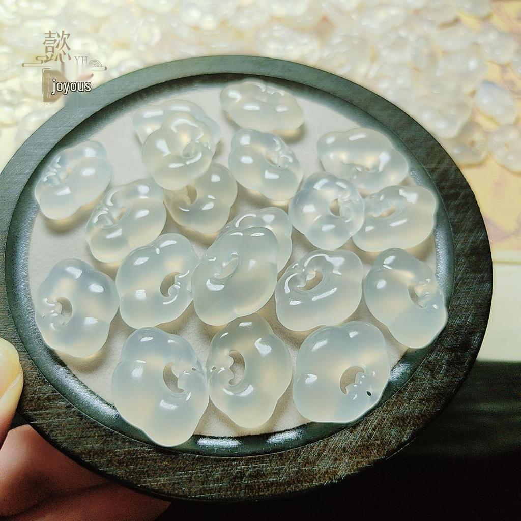 Chalcedony & Agate Fluorescent Ruyi Jade Pendant Necklace
