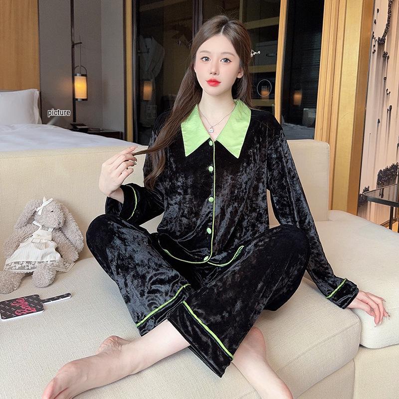Women's French Luxury Pajama Set: Gold Velvet Long-Sleeved Top & Pants for Autumn/Winter