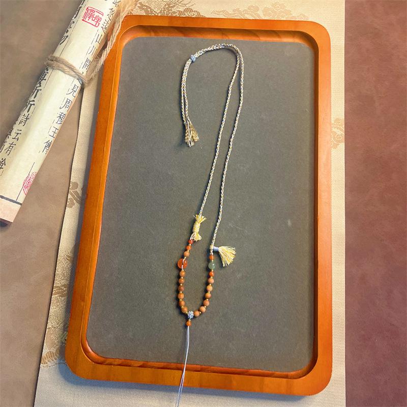 Southern Red Jade and Gold Amber Pendant with Handmade Woven Rope