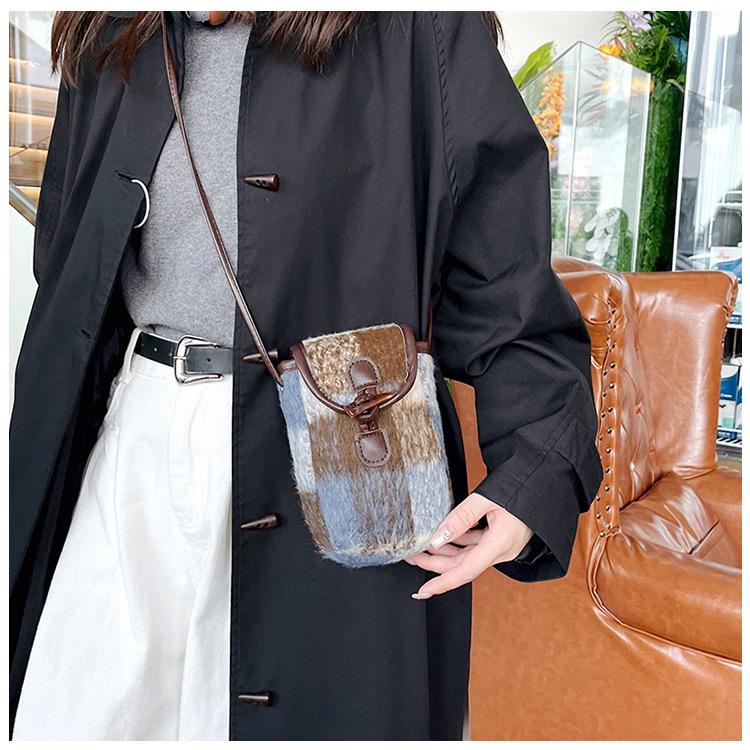 Women's Woolen Plaid Crossbody Mini Phone Bag - Lock Design 2025 Edition