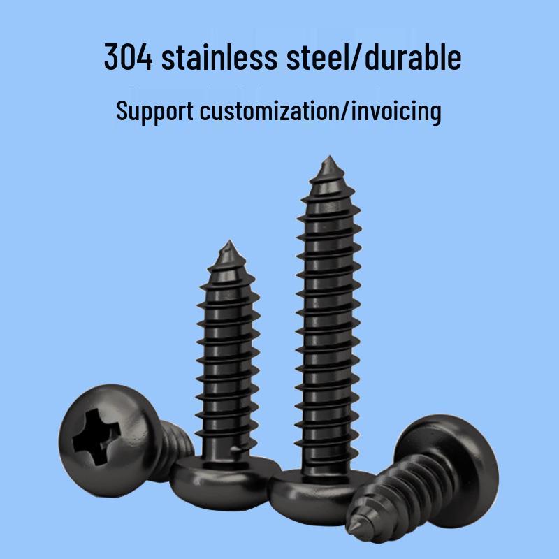 Black Zinc Plated 304 Stainless Steel Phillips Round Head Self-Tapping Screws