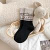 Women's Fair Isle Cashmere Knee-High Socks: Thick, Warm, Heat-Storing, Snowflake & Reindeer Design, Christmas Mid-Calf Woolen Comfort.
