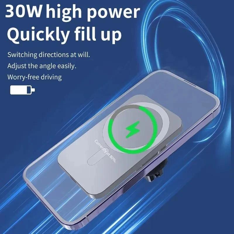 30W Magnetic Car Wireless Charger For iPhone 15 14 13 12 Pro Max Mini Car Phone Holder Stand Mount Fast Charging Adapter Station