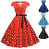 BITCED Plus Size Women's Elegant Vintage Polka Dot Waist-Tied Square Neckline Full-Skirt Dress
