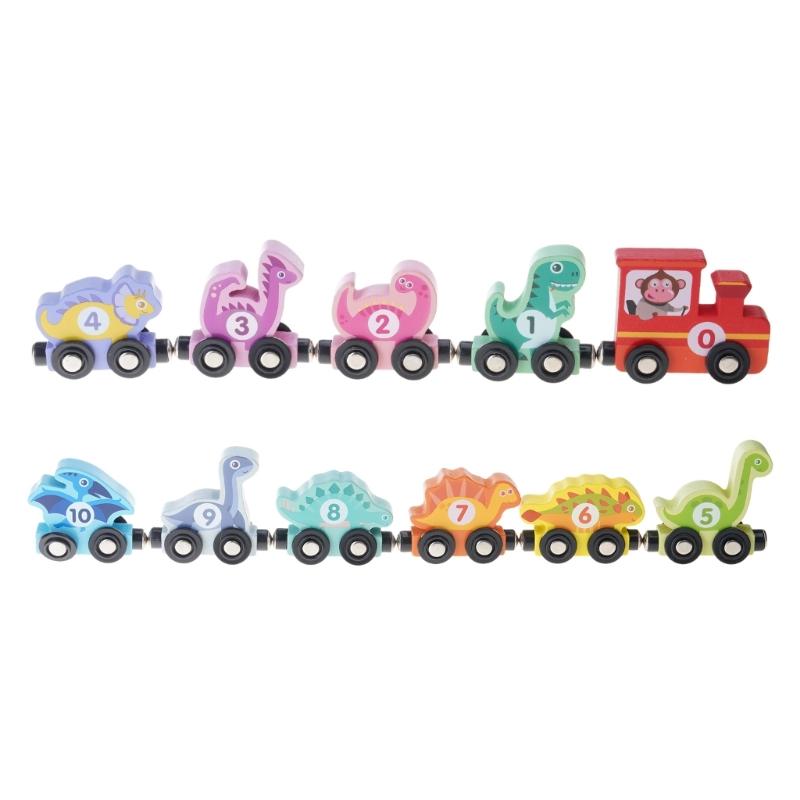 Magnetic Dinosaur Theme Wood Train Set Educational Toy For Early Learning And Hand Eye Coordination For Children
