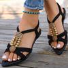 Fashion Shoes for Women 2024 Fashion Summer Women's Sandals Elastic Band Solid Beads Open Toe Low-heeled Large Size 43 Casual Sandals