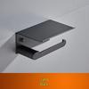 Toilet Paper Holder Stainless Steel Paper Roll Holder with Shelf Drilling Tissue Paper Holder Wall Mount (Black)