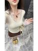 Sweet U-Neck Lace Long Sleeve T-Shirt Women's Pleated Bottom Shirt Early Spring Break Two Pure Desire Button Top