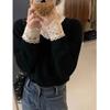 Black Lace Knitted Sweater Women's Collar Trendy Inner Long Sleeve Top Autumn and Winter Slim Flared Sleeve Bottom Sweater