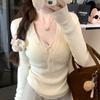 Button v-neck lace splicing knitted sweater women's autumn and winter slim-fitting and thin inner top bottoming shirt