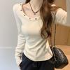 Temperament collar, rivet shirt, long-sleeved women's top, spring slim-fit Spice Girl style fashionable inner bottoming shirt
