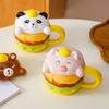 Creative Design Ceramic Burger Mug with Lid Cute Cartoon Animal Shape Household Drinking Cup Souvenir