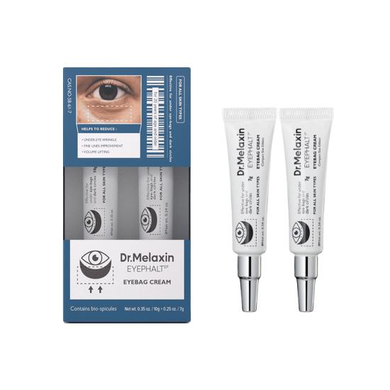 Dr.Melaxin Eyephalt Eyebag Eye Cream is a specialized eye-contour cream formulated to address common eye-area concerns such as under-eye bags, puffiness, dark circles, loss of firmness, and volume loss. The 7 g + 10 g duo set gives users a convenient supply — ideal for home use + travel, or longer-term continuous care. The formula combines barrier-strengthening lipids, brightening agents, and active peptides to help firm, moisturize, and smooth the delicate skin around the eyes.