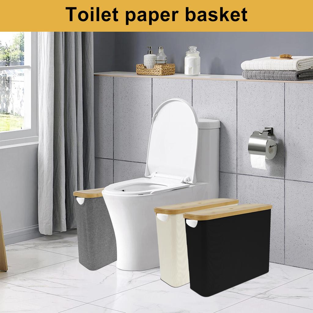 Cestino per la carta igienica da bagno, pieghevole, grande capacità, con coperchio in legno per l'organizzazione del bagno