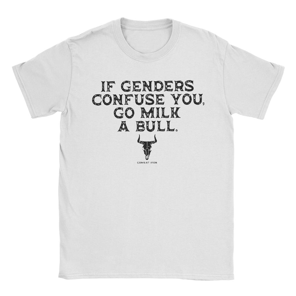 If Genders Confuse You Go Milk A Bull Men T Shirts Awesome Tee Shirt Short Sleeve O Neck T-Shirts 100% Cotton Gift Idea Clothes
