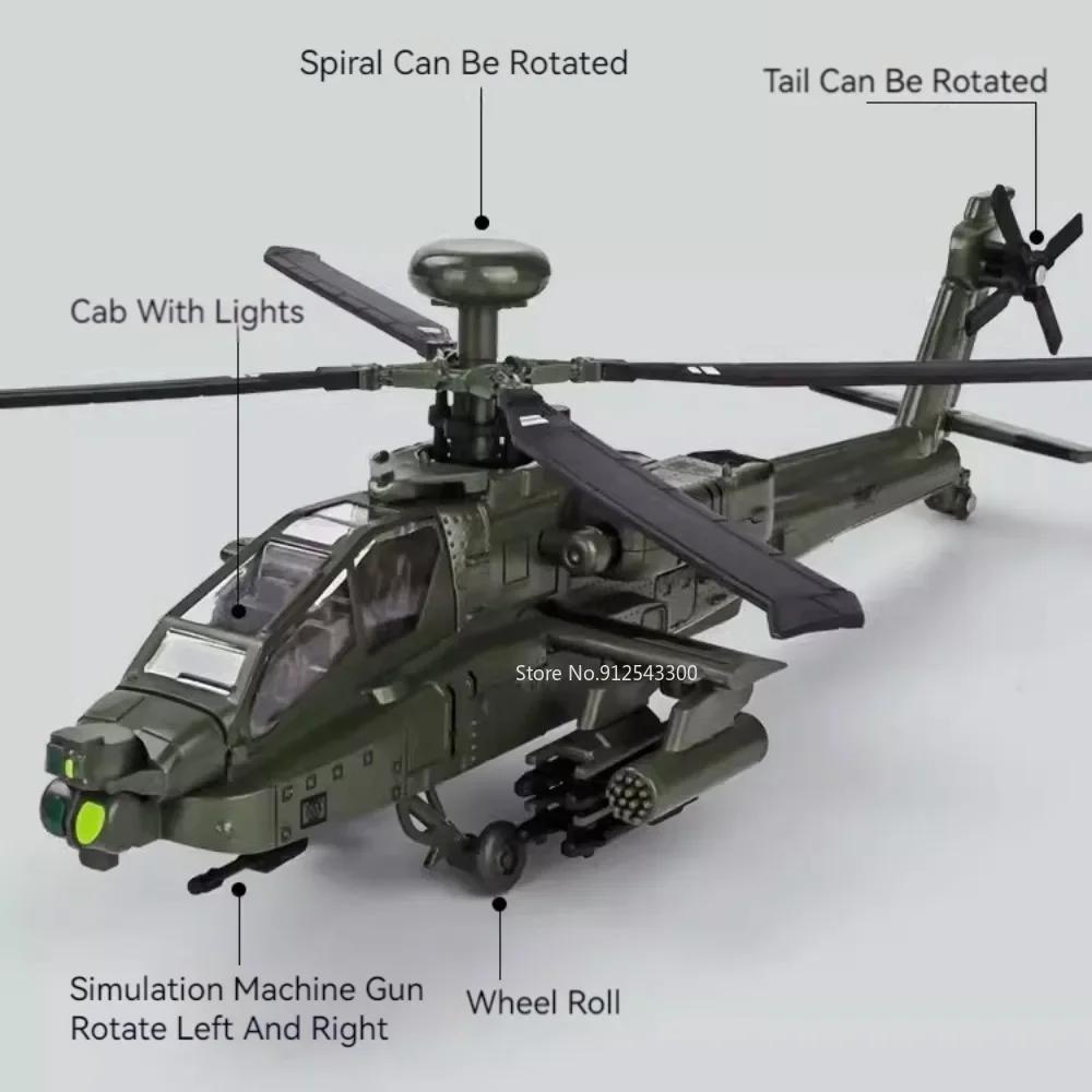 Scale 1:32 AH-64A Airplane Model Toy Car Die-cast Metal Sound Light Rotatable Tail Wing Fighter Models Boys Festival Presents
