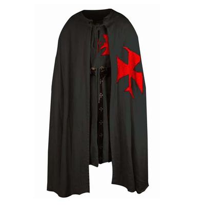 Soprabito e Mantello Templare Medievale Crociato Rievocazione LARP Nero, Rosso