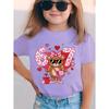 Purple children's short sleeved T-shirt, cute pink star "67" digital print girl summer round neck breathable baby short sleeved top