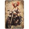 Vintage Motorcycle Girls Metal Tin Sign Garage Bar Decor
