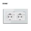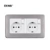 EIOMR EU Standard Electrical Sockets Simple Style PC Panel Double Socket Strip with Switch Button EU Russia Spain Wall Socket