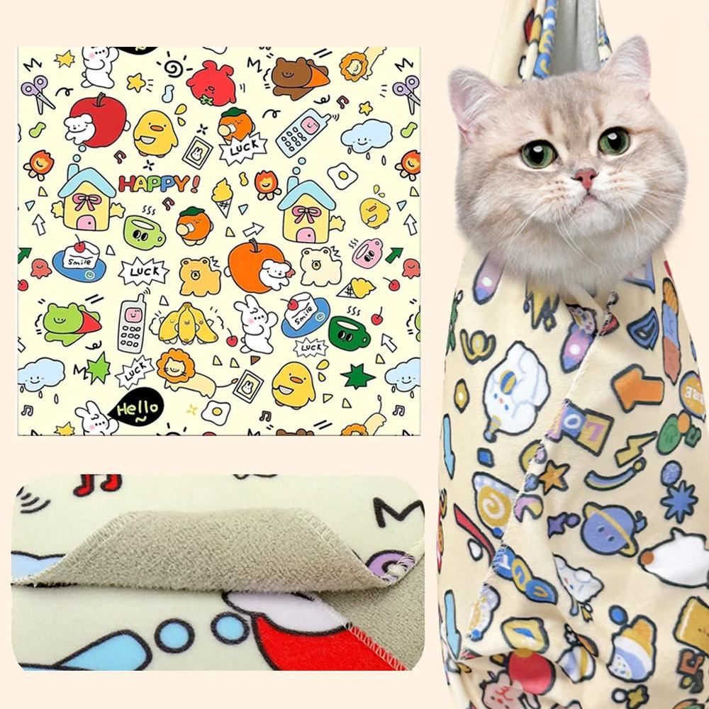 Cat Grooming Wrap Self-Adherent Cat Restraint Wrap Anti-Scratch Cat Swaddle Burrito Wrap for Nail Trimming Cat Grooming Supplies