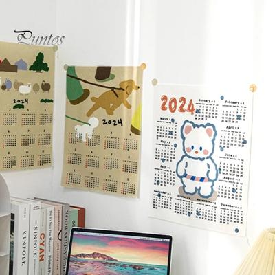 2024 Calendario degli arazzi Appeso in stoffa Modello di cartone animato Colore ricco Calendario di sfondo decorativo per arazzo da parete facile da installare