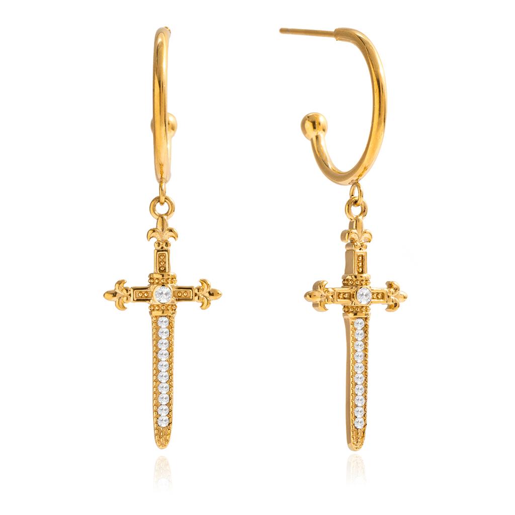 Youthway Classic Crystal Cross Sword Drop Earrings For Women Gold Plated Stainless Steel Earrings Fashion Jewelry Girls Gift