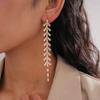 Long Plated Crystal Leaf Tassel Drop Earrings For Women Exquisite Luxury Wedding Fashion Jewelry Gift